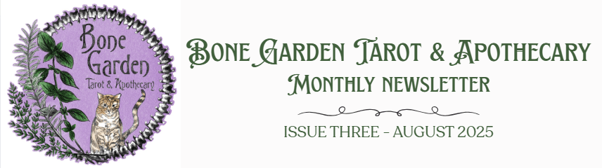 Welcome to the Garden! Operated by a married duo of eclectic witches, Bone Garden Tarot & Apothecary offers intuitive tarot readings and witchy goodies to help the spiritually curious dive deeper into their own power and practice. Join our newsletter for a monthly ritual, shop updates, and other musings from the past month!